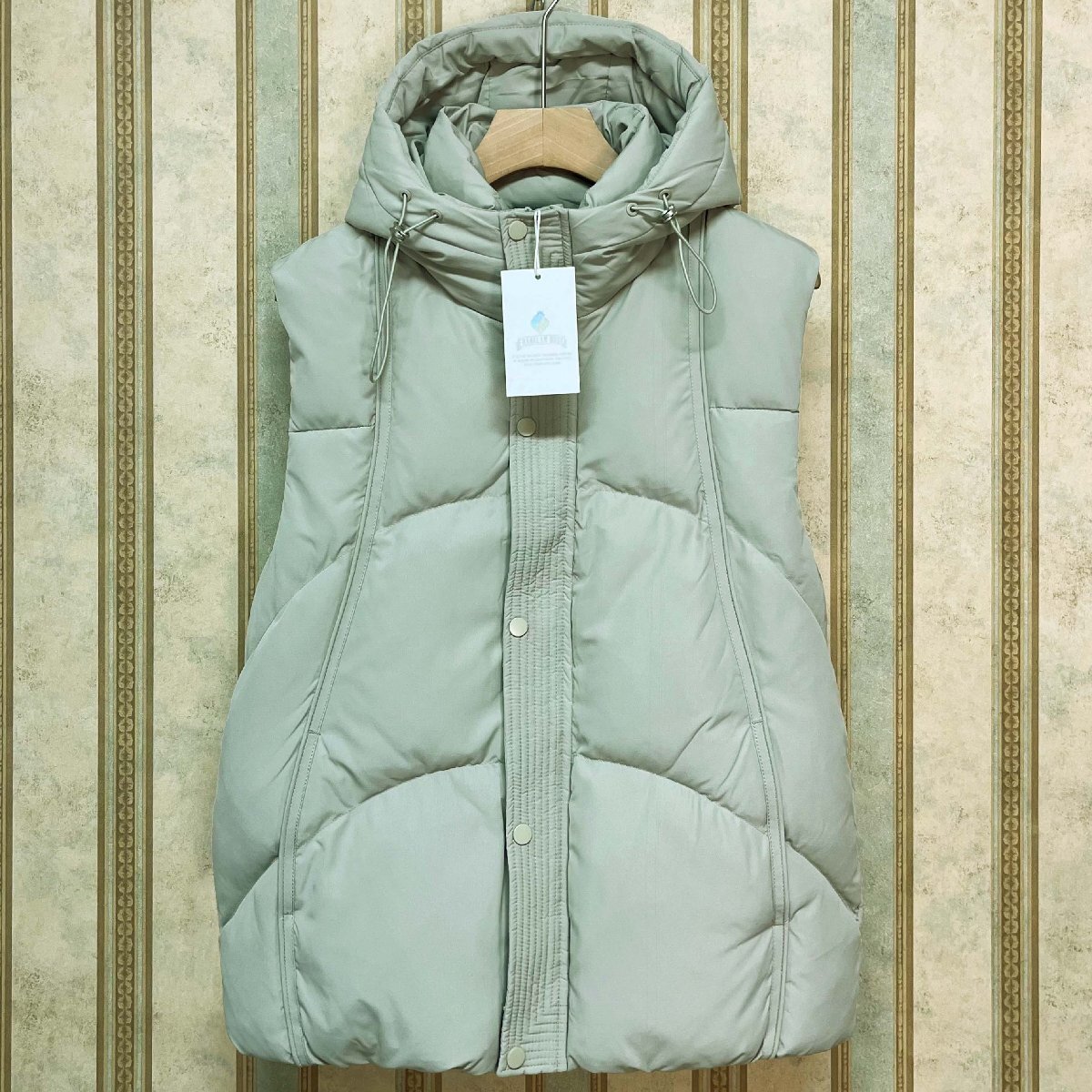 > 定価8万 FRANKLIN MUSK・アメリカ・ニューヨーク発 ダウンベスト ダックダウン90% 柔らか 暖かい ふわふわ フード付き アウター サイズ4