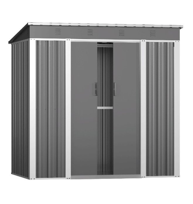 - 迅速配送・物置 屋外 スチール 倉庫 戸外収納庫 き おしゃれ 防さび ベランダ 防水 ドア 引戸 スチール ガーデニング 庭 【グレー】