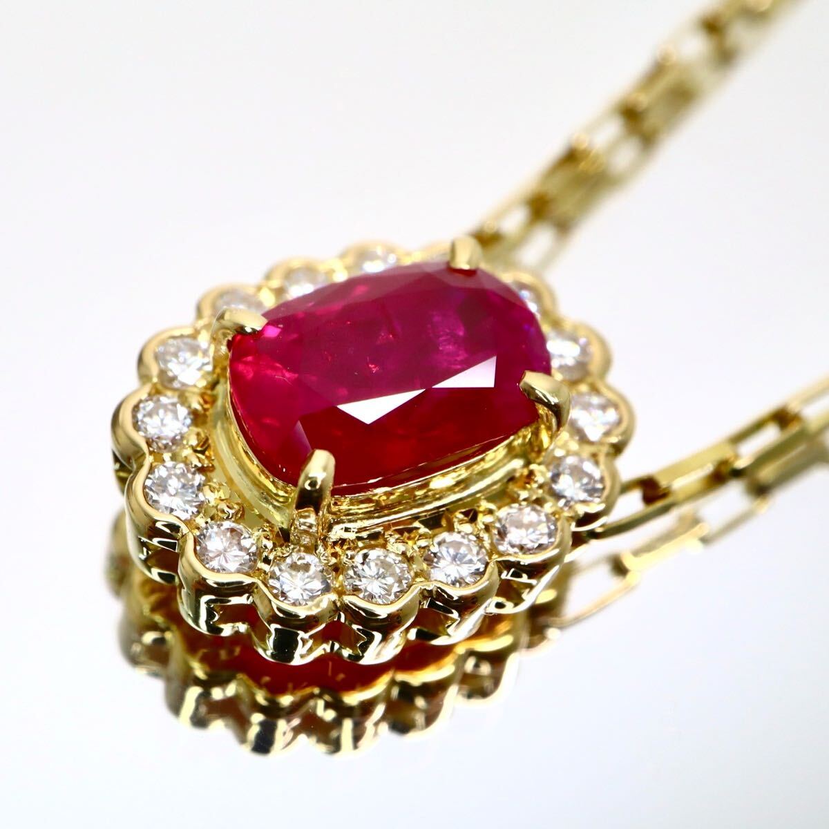 > K18!!1.62/0.27ct!!ソ付き!!■天然ルビー/天然ダイヤモンドネックレス■N 約4.5g 約40.0cm ruby diamond necklace jewelry FA1/FA2 U619
