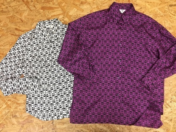 > HM SPORTS レディース 日本製 ポリエステル100% ロゴプリント モノグラム風 シャツ ブラウス 色違い 型違い 2点セット 紫 白 サイズM