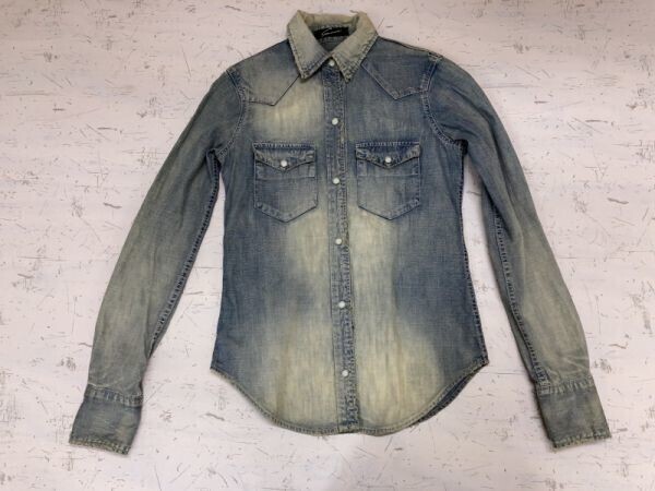 > STUNNING LURE スタニングルアー USEDウォッシュ 長袖デニムウエスタンシャツ レディース 日本製 36 青