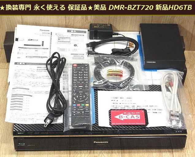 > ★換装専門★永く使える完全動作 保証品◎HD詳細画像★美品DMR-BZT720 換装 本当の新品HD6TB 3ヶ月保証+外付け2TB◆新品リモコン新品付属品