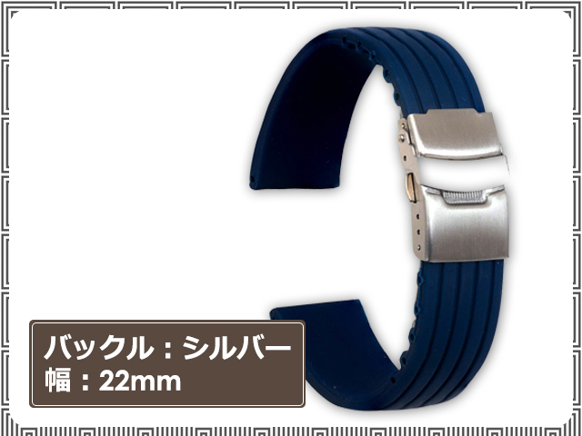 - 新品 時計バンド 交換ベルト シリコーンゴム 腕時計 ストラップ 22mm シルバー金具×ネイビー [1102:madi]