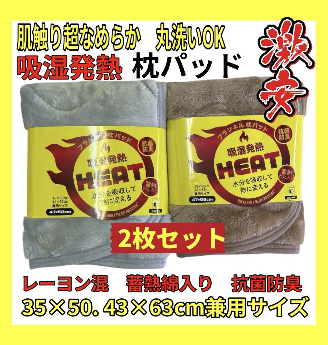 - 2枚セット☆激安☆吸湿発熱☆枕パッド☆兼用サイズ47×58cm☆蓄熱綿入り☆抗菌防臭☆GL BE