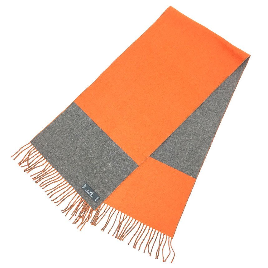 - セール 送料無料 HERMES エルメス カシミヤ マフラー カザック バイカラー ショール ストール グレー オレンジ 男女兼用 美品 aq9744