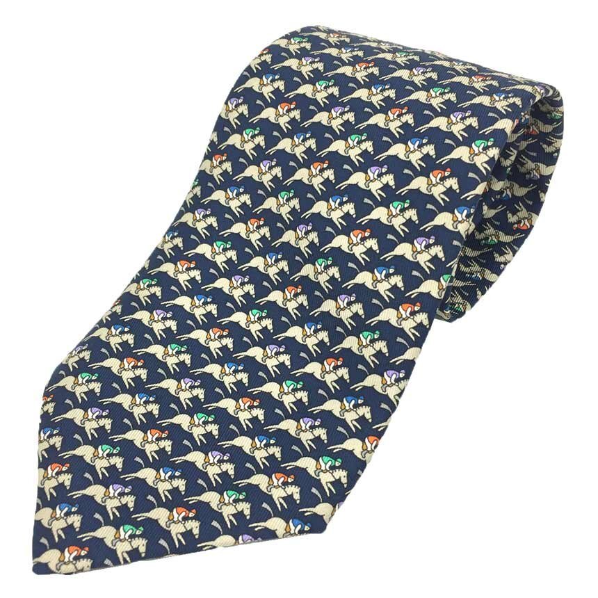 - 全国送料無料 HERMES エルメス ネクタイ ジョッキー 馬 シルク ネイビー メンズ ビジネス小物 服飾小物 美品 中古 aq11715