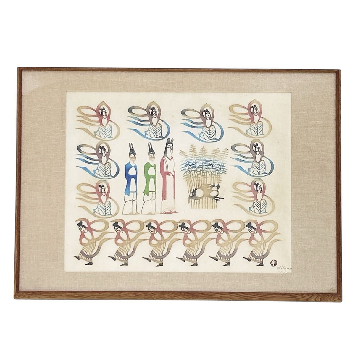 - 人間国宝 稲垣捻次郎 竹取物語 木版画 117/300 額装 arc川0930