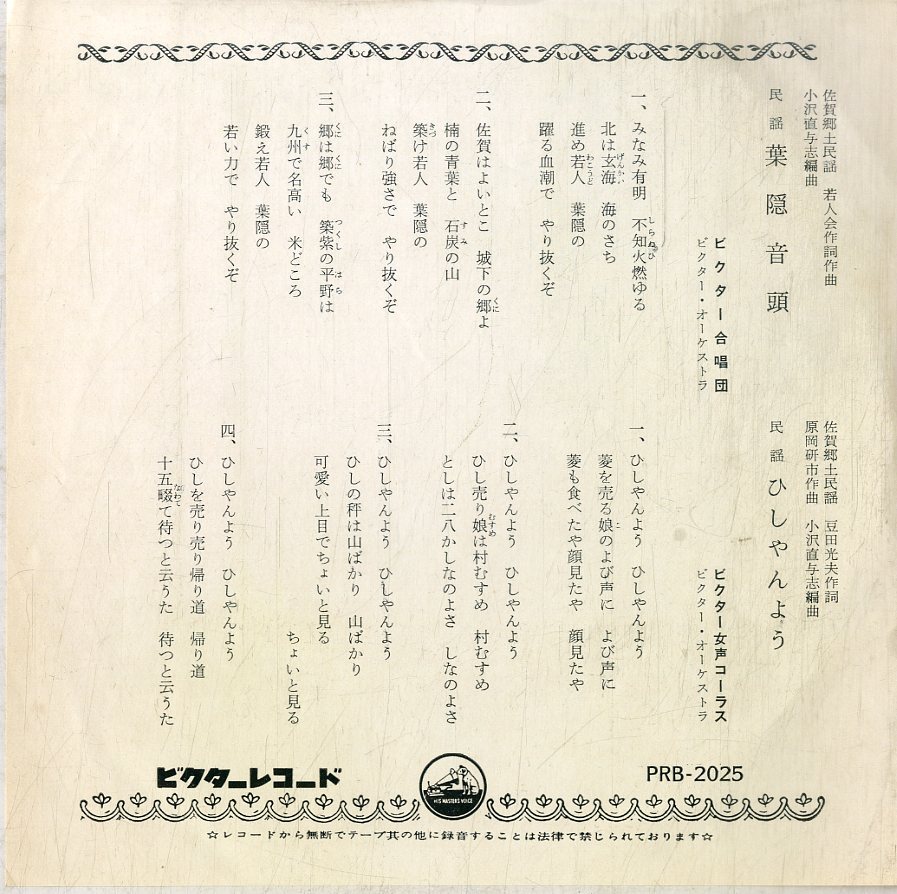 C00183092/EP/ビクター合唱団/ビクター女声コーラス「葉隠音頭/ひしやんよう」