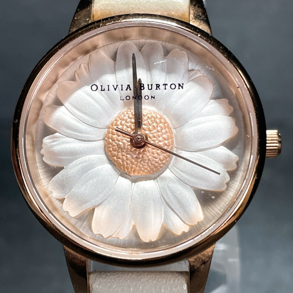 > 美品 OLIVIA BURTON オリビアバートン 腕時計 アナログ クオーツ 3針 シルバー文字盤 レザーバンド ゴールド ラウンド 動作確認済み