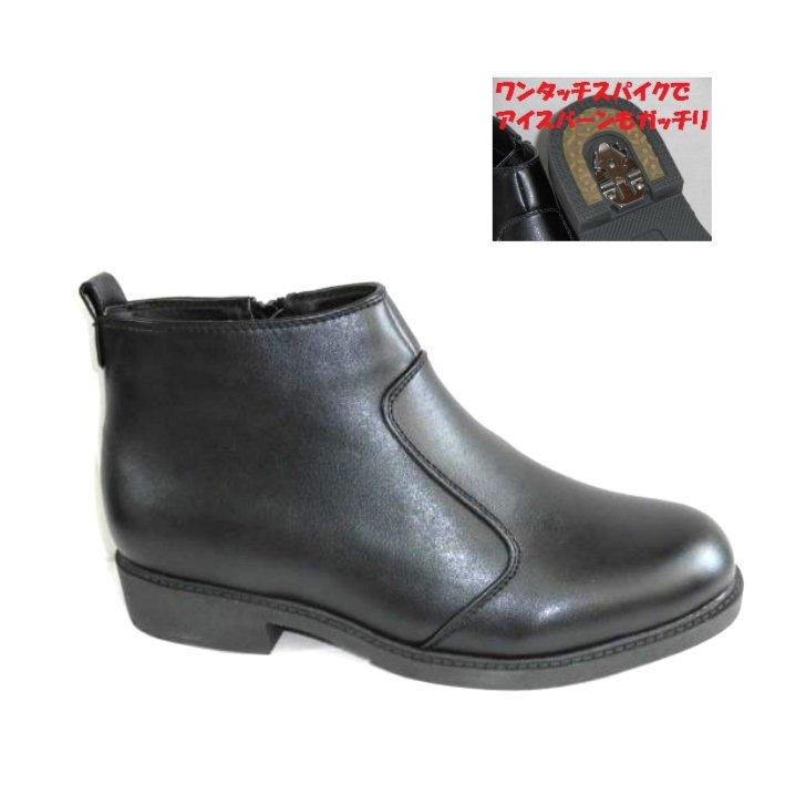 > 滑らない ワンタッチスパイク 防水 25.0 PMS60200 黒 幅広 4E 防滑 収納式スパイク レイン ショートブーツ ドレスブーツ 紳士 メンズ 長靴