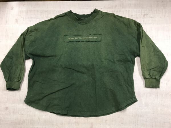 > キューブシュガー CUBE SUGAR ミリタリー アメカジ フロントワッペン ビッグシルエット ロンT 長袖Tシャツ カットソー メンズ M 緑