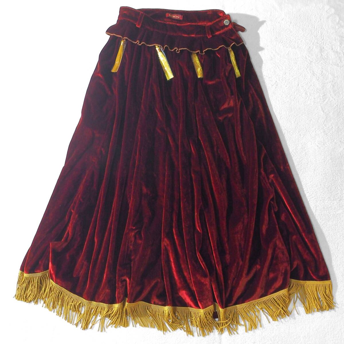 - 定価 71,500円 未使用 ハザマ hazama 幕開けのベルベット 2022 ロングスカート ボルドー バーガンディ タッセル レディースXS