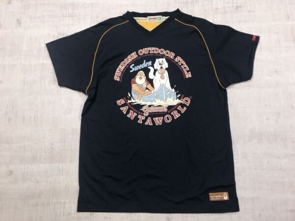 - サンタワールド Santaworld アメカジ サーフ マリンスポーツ レトロ 発泡プリント 半袖Tシャツ メンズ コットン100% L 紺