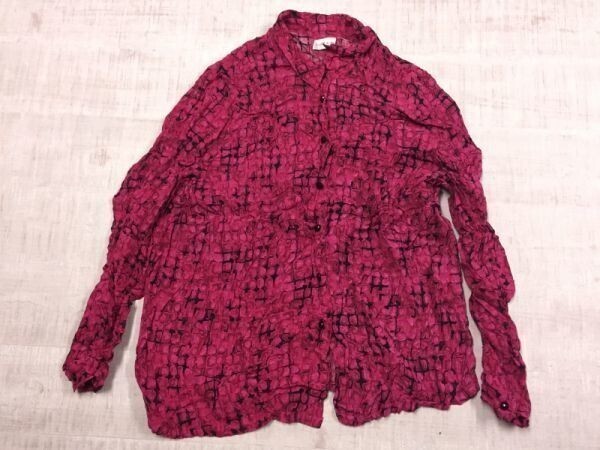 - コレット KORET オールド レトロ 古着 長袖 総柄シャツ ブラウス トップス レディース シワ加工 ピンク