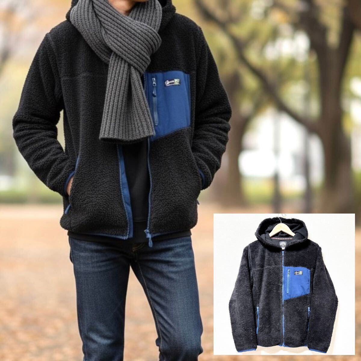 > デイリーに大活躍!【POWER TO THE PEOPLE】フリース パーカー ブルゾン アウター アウトドア Culture mix ブラック 黒 メンズ M /Y37367SS