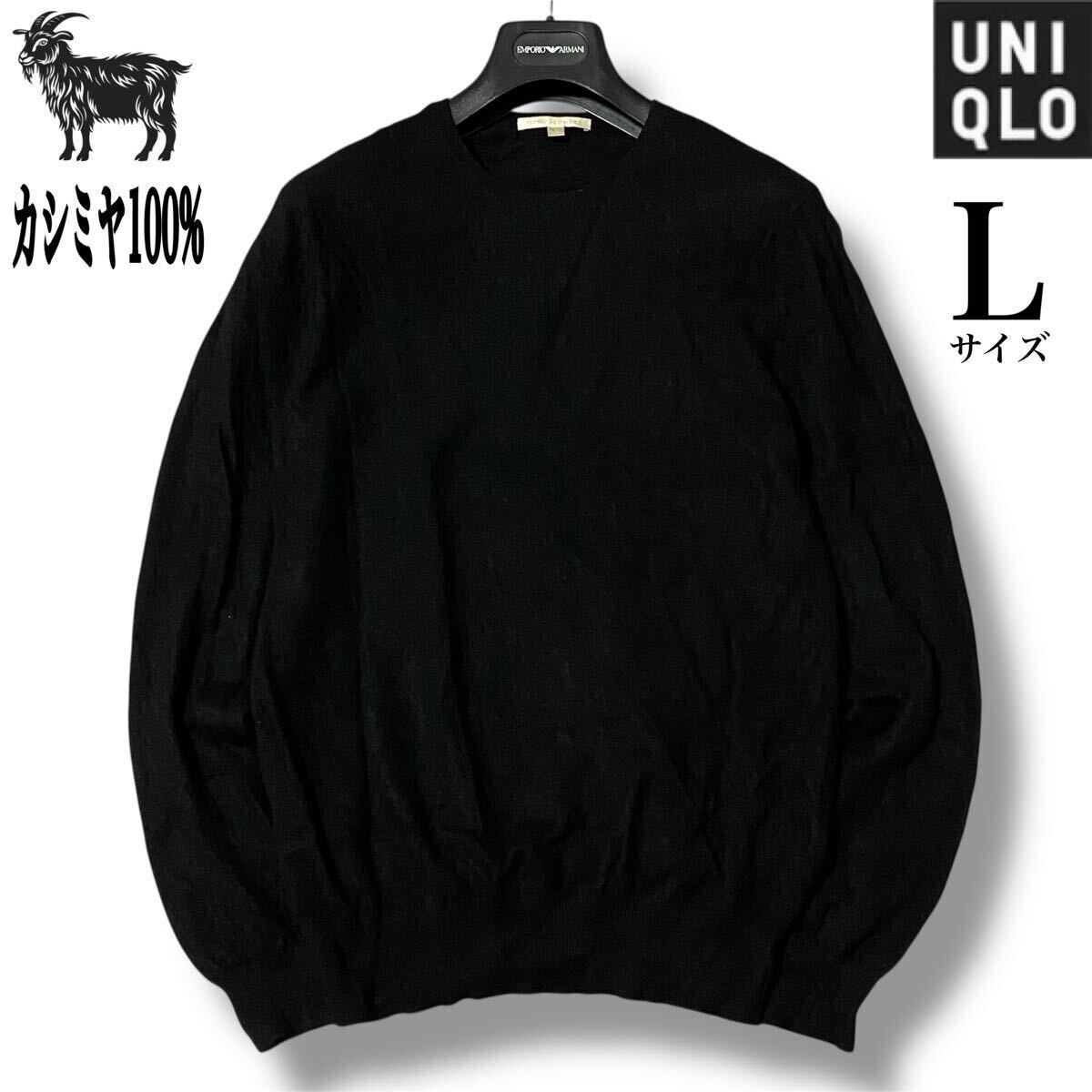 - 美品◎カシミヤ100%▼希少L【UNIQLO】クルーネックニットセーター ユニクロ 人気の黒/ブラック 極上トロふわ肌触り メンズ長袖ニット