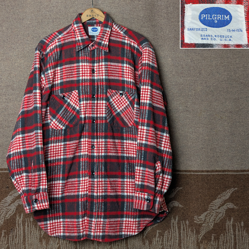 > マチ付き【PILGRIM】50年代 フランネル ワーク シャツ M ピルグリム ヘビーネル ネルシャツ マチネル シアーズ SEARS ビンテージ 40s50s60s