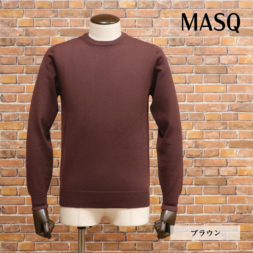 - 1円/秋冬/MASQ/46サイズ/イタリア製ニット エクストラファインメリノウール100% 無地 艶やか 上質 新品/茶色/ブラウン/md407/