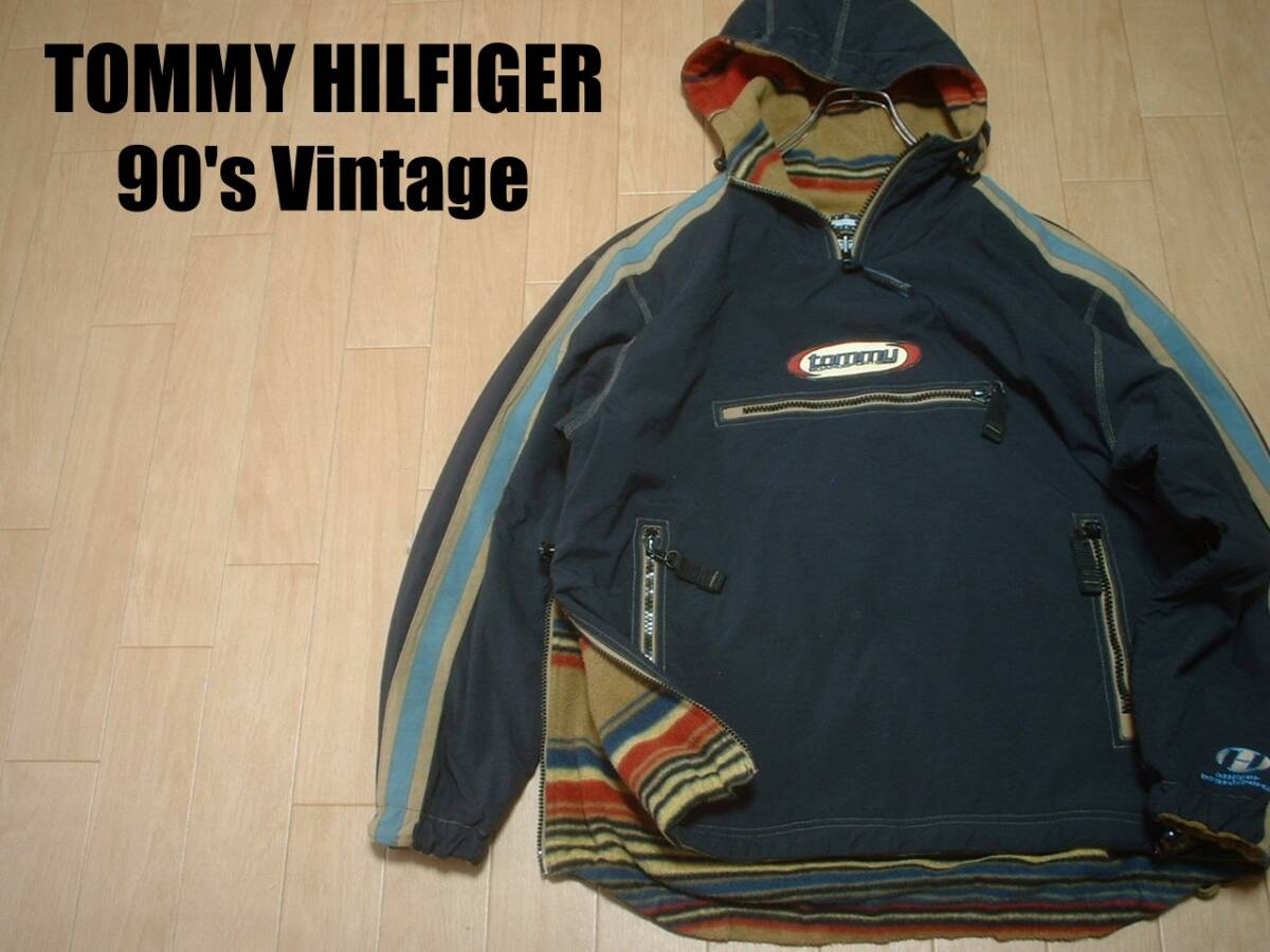- お宝90sビンテージTOMMY HILFIGERウインターアノラックパーカー美品Mシェルドシンチラ正規トミーヒルフィガーフリースxナイロンジャケット