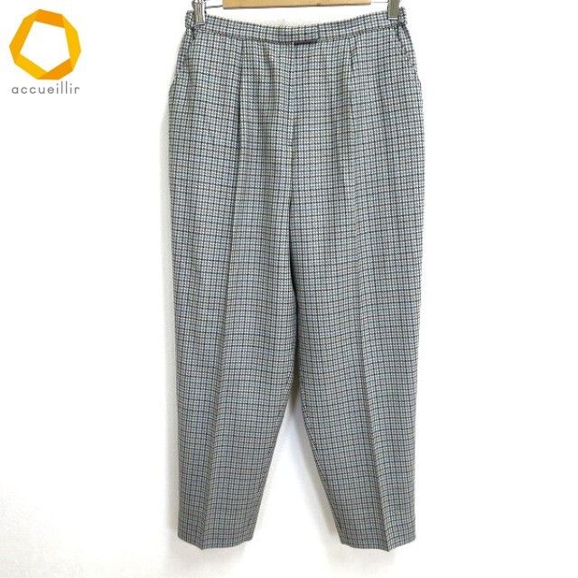 > #w レリアン Leilian パンツ 13+ 紺 水色 マルチ 千鳥柄 チェック ウール 毛 100% 日本製 13号 大きいサイズ レディース [944770] k01