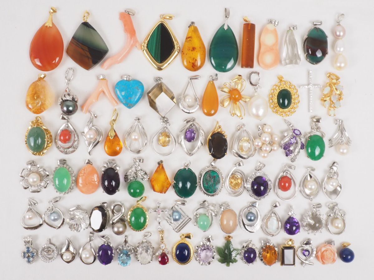 - 豪華 ペンダント トップ 約80点 珊瑚 真珠 琥珀 等 SILVER 925 K18 色石色々 09 シルバー