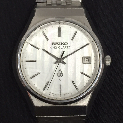 > セイコー キングクォーツ デイト クォーツ 腕時計 0852-8001-G メンズ シルバーカラー文字盤 未稼働品 純正ブレス