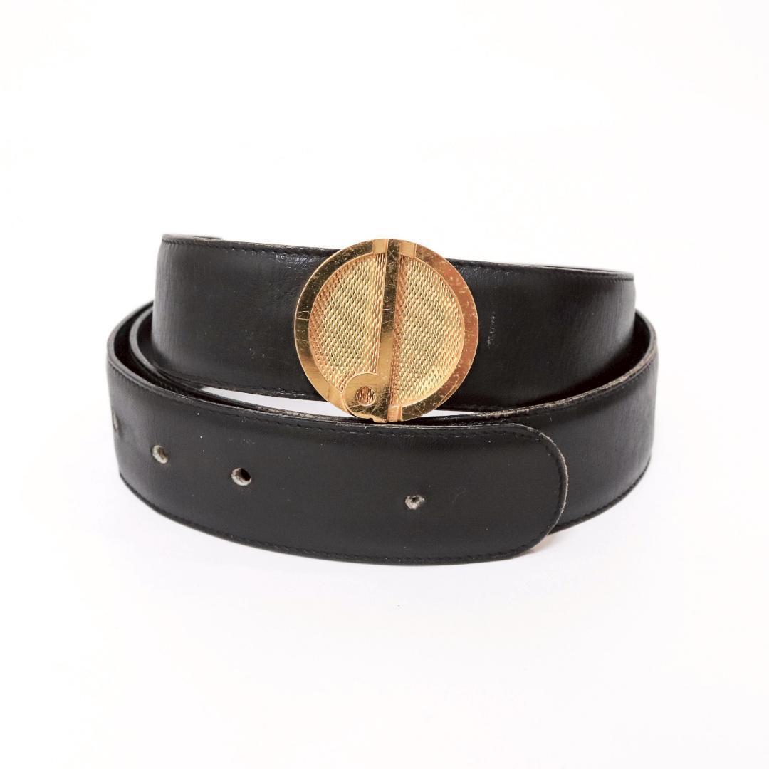 - dunhill ダンヒル レザーベルト 黒×金 85cm±5 幅3.5 1006