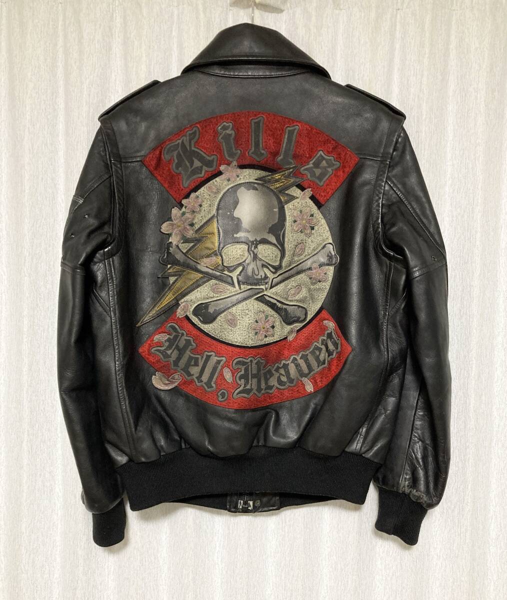 - [Roen] 髑髏×桜 神風 2WAY フライングジャケット フライトレザージャケット スカル ライダース 48 牛革 ブラック 日本製 72132025 ロエン