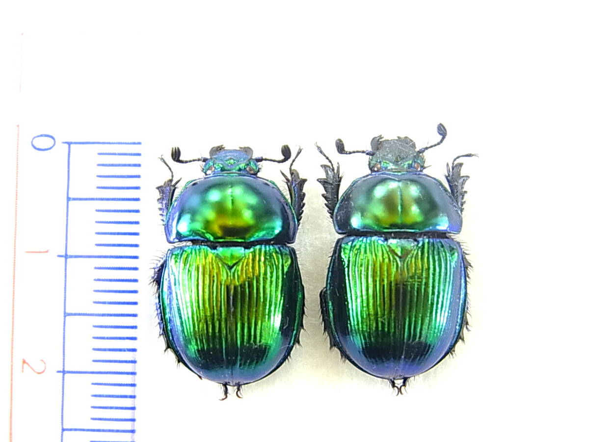- 京都府宇治田原町産ミドリセンチコガネ・ペア標本 ライトグリーン光沢 20㎜オーバー・大型美麗品