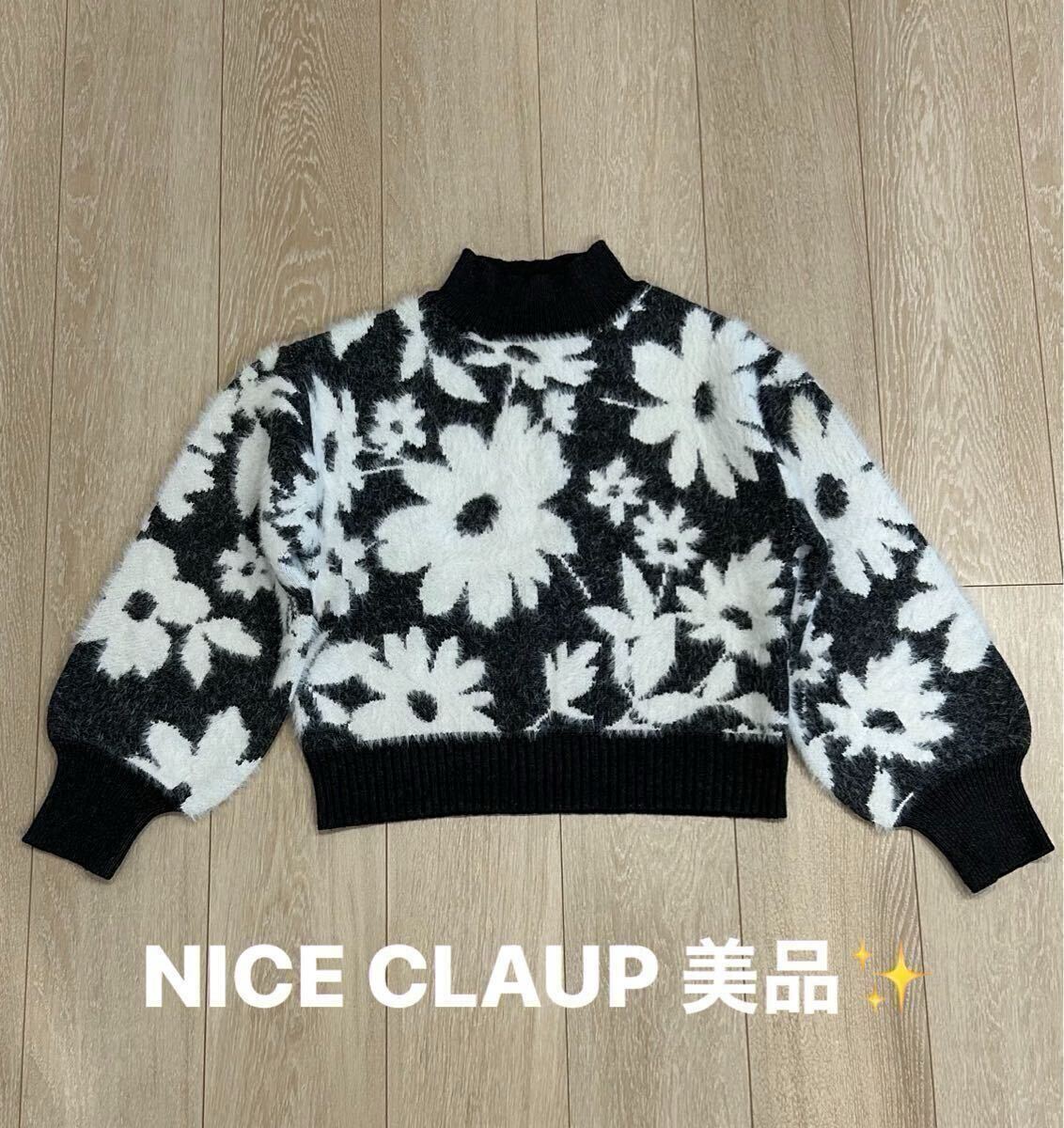 - NICE CLAUP フラワー フェザー 花柄 ニット セーター スミクロ ブラック F