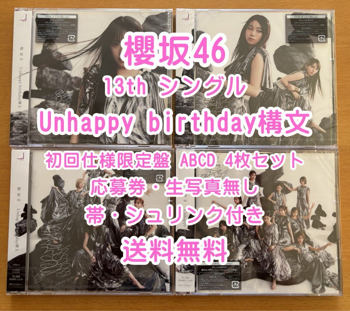 - ◆ 櫻坂46 13th Unhappy birthday構文 初回仕様限定盤 ABCD 4枚セット ◆ おすすめ