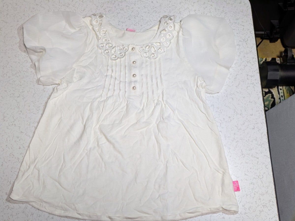> メゾピアノ レース襟パールボタンバルーンスリーブTシャツ サイズL 160cm
