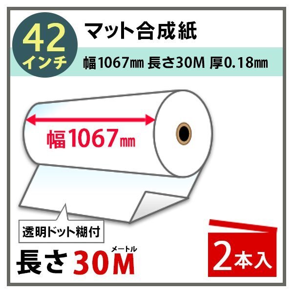 > インクジェットロール紙 マット合成紙/微粘着 透明ドット糊付き 再剥離 幅1067mm(42インチ)×長さ30m×3インチ 2本(NIJ-YTRII)※代引不可