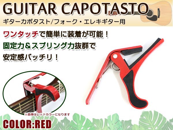 > メール便送料無料!アコースティックギター フォークギター エレキギター 対応 バネ式クリップタイプ カポタスト カポ レッド 赤