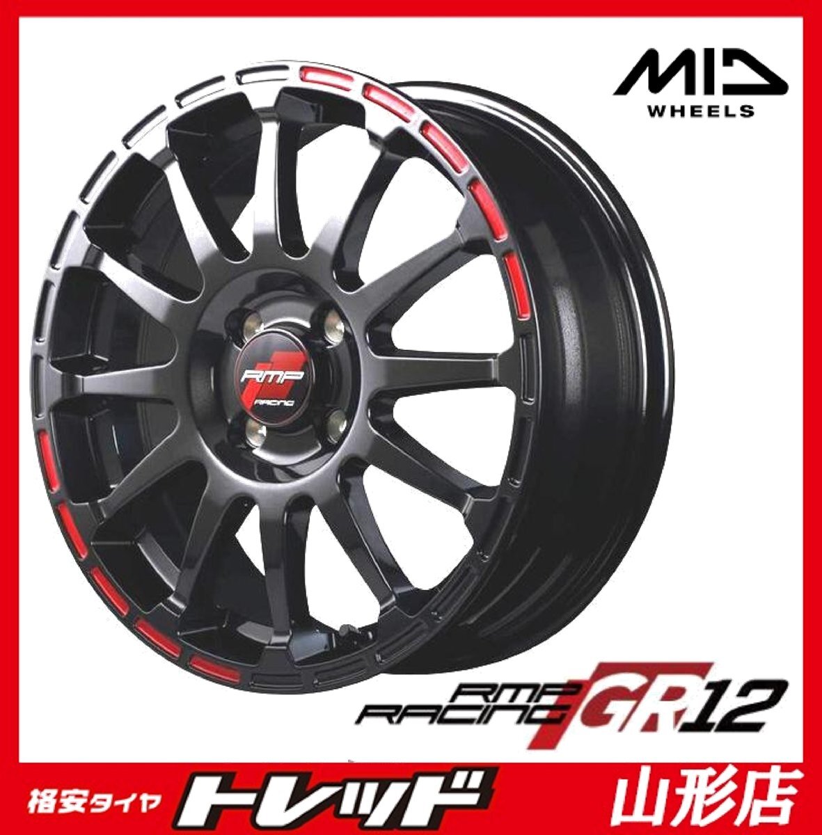 - ★送料無料★山形店 新品アルミホイール4本 MID RMPレーシング GR12 16インチ 6.0J 4H100 +43 クリスタルブラック/ストロボレッド