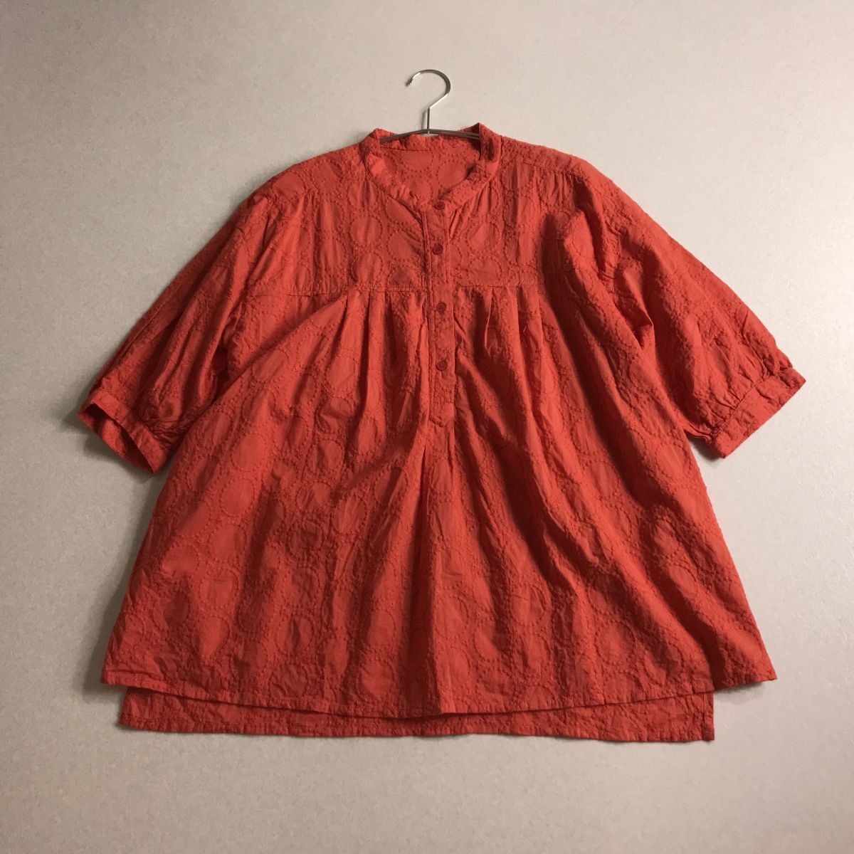 - ☆ 100円スタート バンドカラー 刺繍デザイン ブラウス 大きいサイズ LL 横幅ゆったり 体型カバー