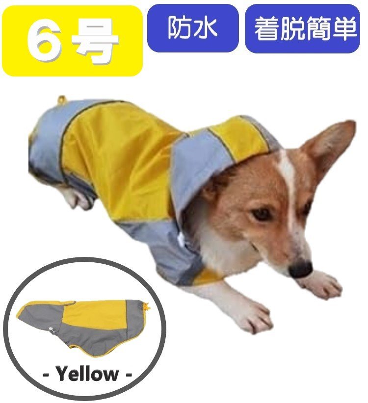 - 犬 レインコート イエロー 6号 カッパ 犬用 小型犬 反射 散歩 防水 撥水 雨具 ポンチョ 梅雨 簡単 マジックテープ