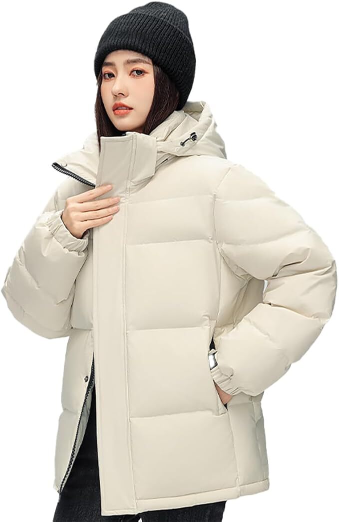 - ダウンジャケット レディース ジャケット ショート丈 アウター フード付き 暖かい 冬服(色: ベージュ サイズ: M)