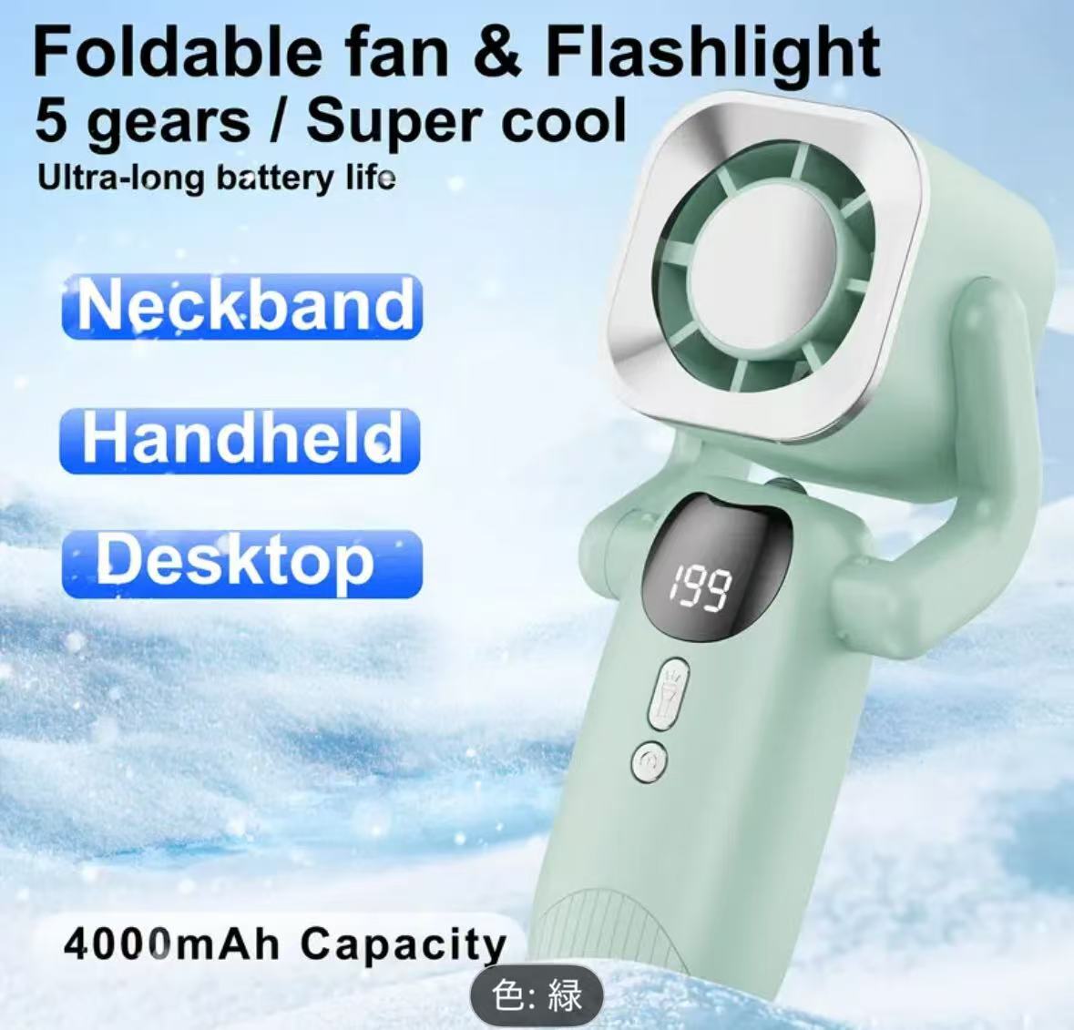 - 折りたたみ式ハンディファン 大風量 静音 風量4段階 4000mAh大容量バッテリー 小型 携帯扇風機 長持ちバッテリー