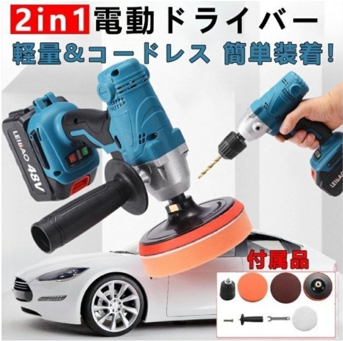 - ポリッシャー 充電式 電動ポリッシャー コードレス一台二役 28点セット 多機能研磨機 マキタ18Vバッテリー互換 業務用 家庭用 1 電 1 充