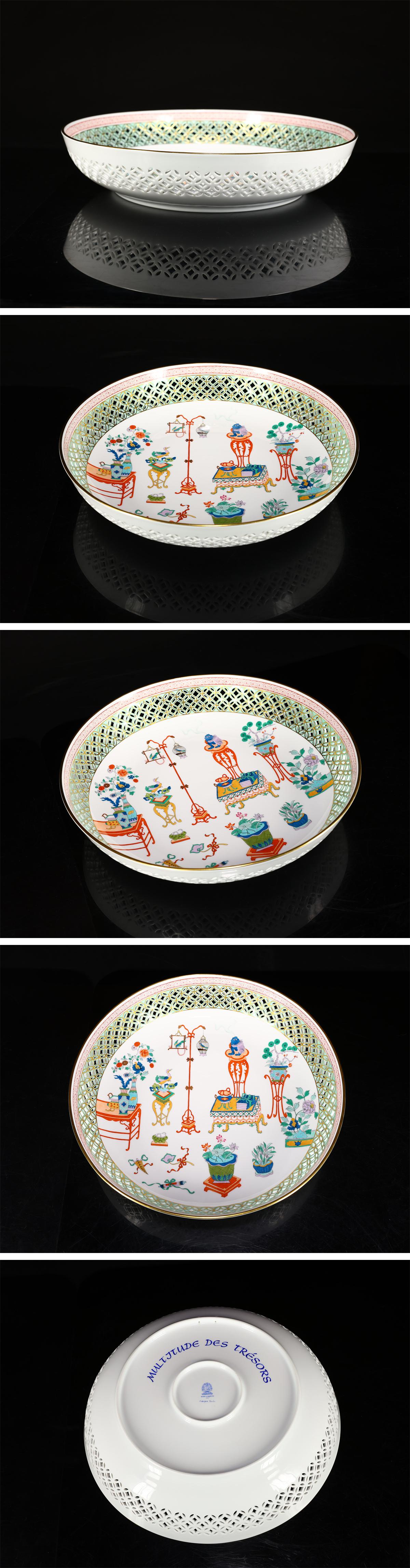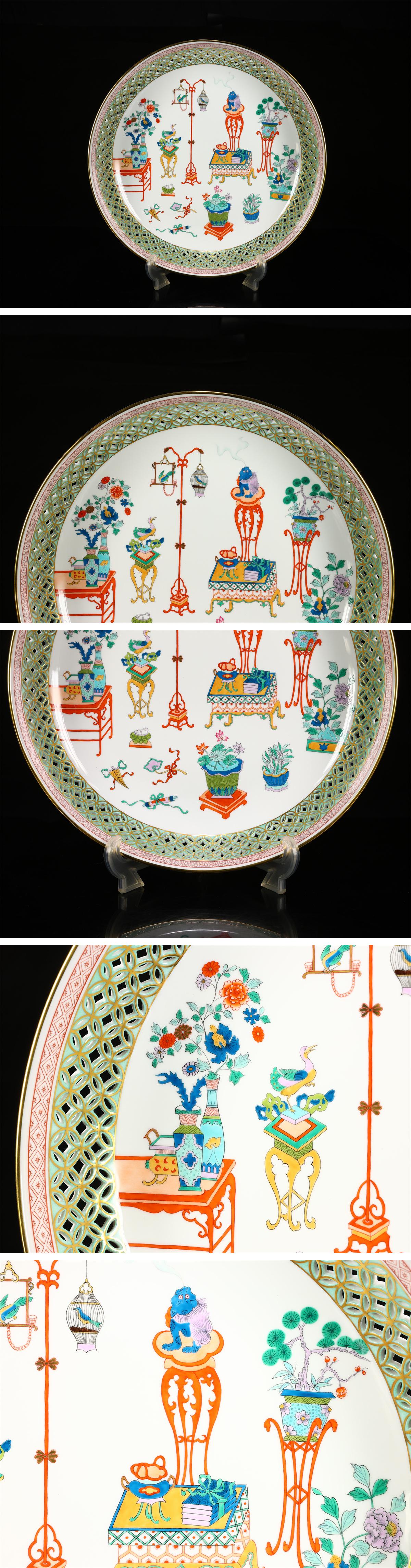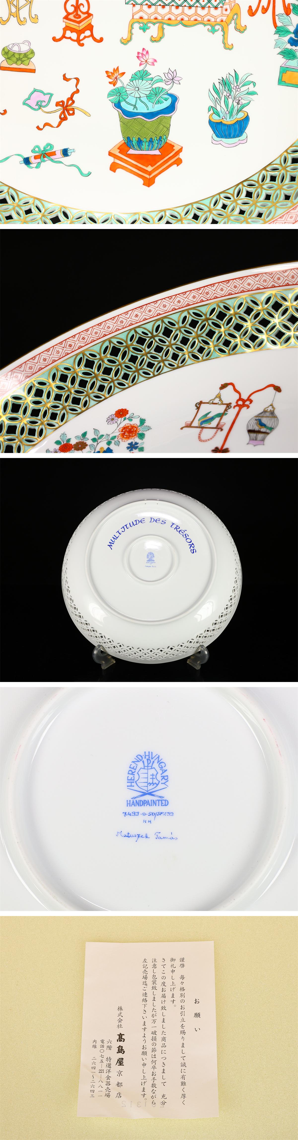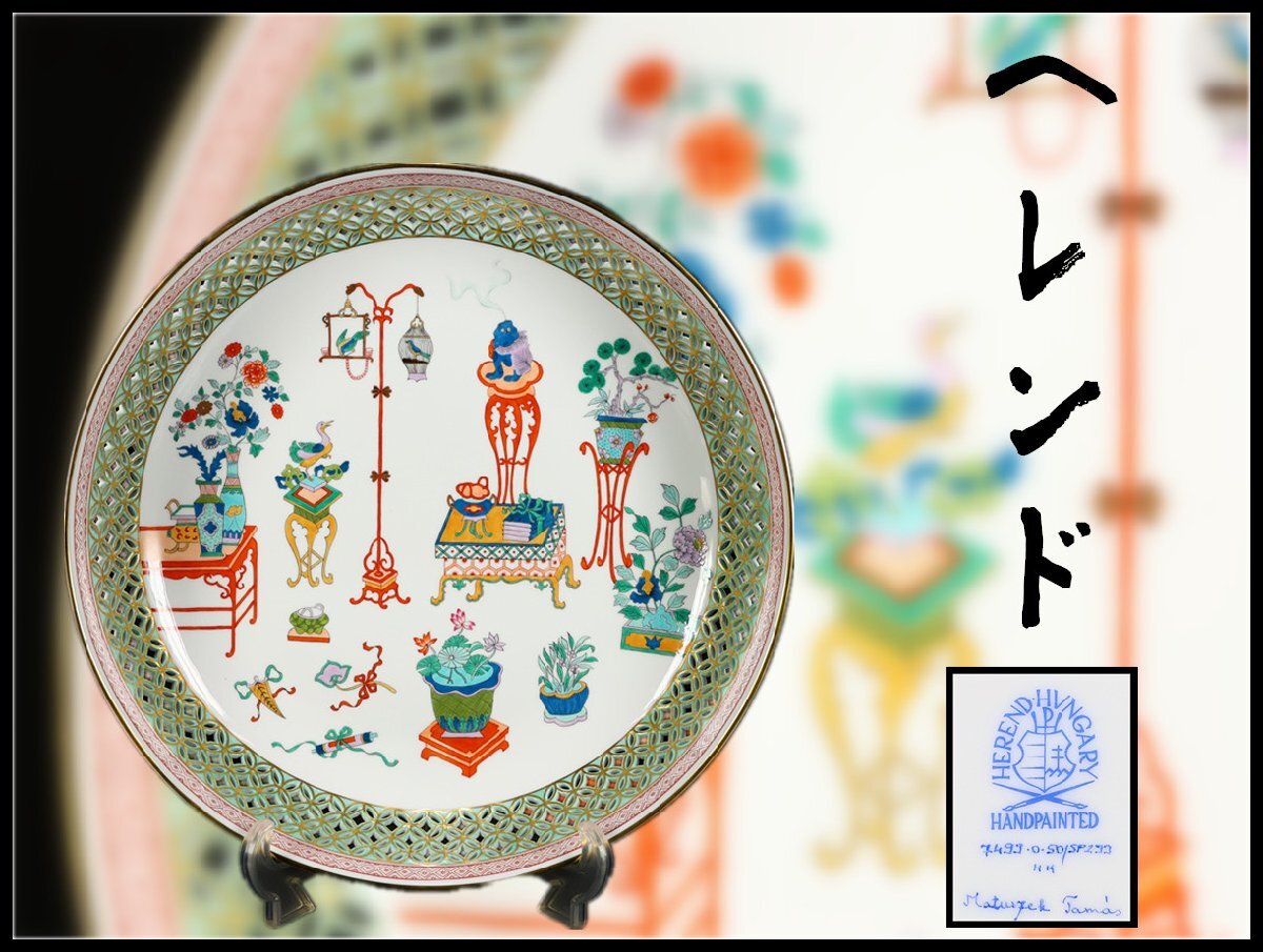 > 【吉】CN633 極稀少品 Herend 【ヘレンド】 中国風宝尽紋 透かし プレート 大皿 径35㎝/高島屋京都店購入品H!