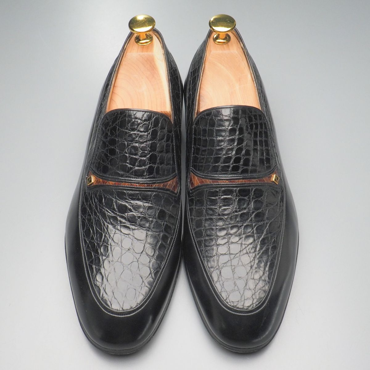 - MI2746//イタリア製*ア テストーニ/a.testoni*メンズ5.5G/本クロコダイル/ワニ革/モカシンローファー/レザースリッポン/革靴/黒/ブラック