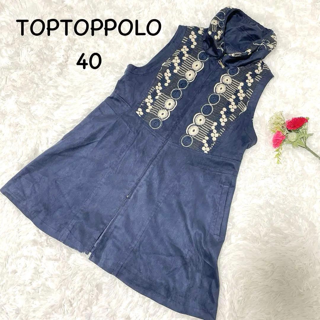 - TOPTOPPOLO【L】フード付きノースリーブワンピース フロント刺繍 ウール