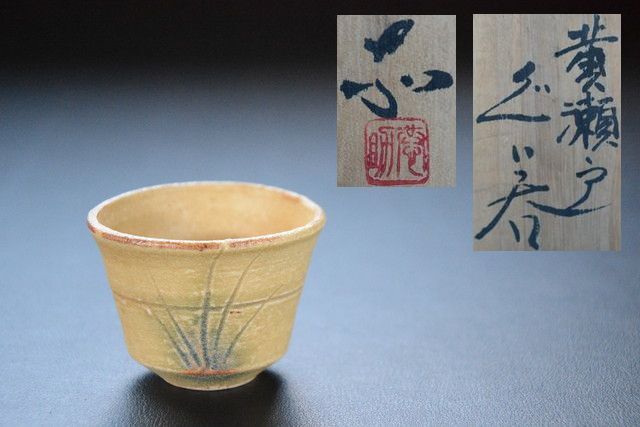 - 【十三】 林恭助造黄瀬戸ぐい呑 栞・共布・共箱付 検索用語→A0243酒器盃杯ぐい呑蕎麦猪口