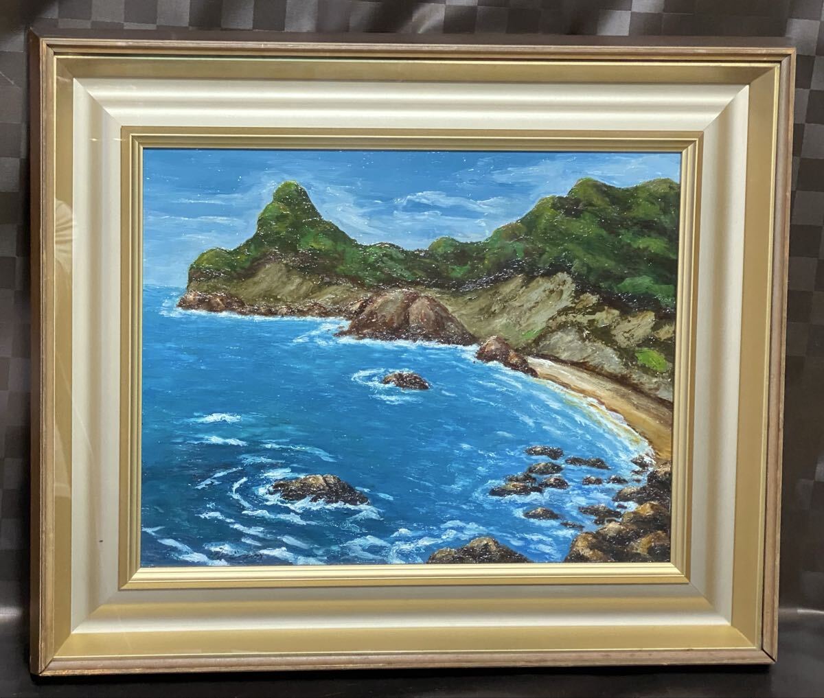 - 真作 油彩画 油絵 出塚忠彦 風景画 海 伊豆 額縁 額装 インテリア