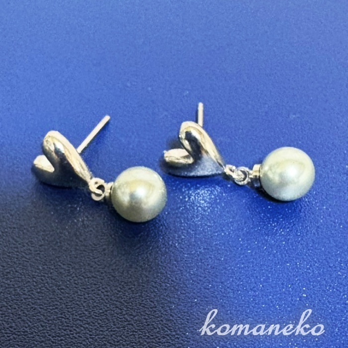 - B534 ピアス レディース ハート パール グレー s925 シルバー 揺れる 軽量 高級感 シンプル 上品