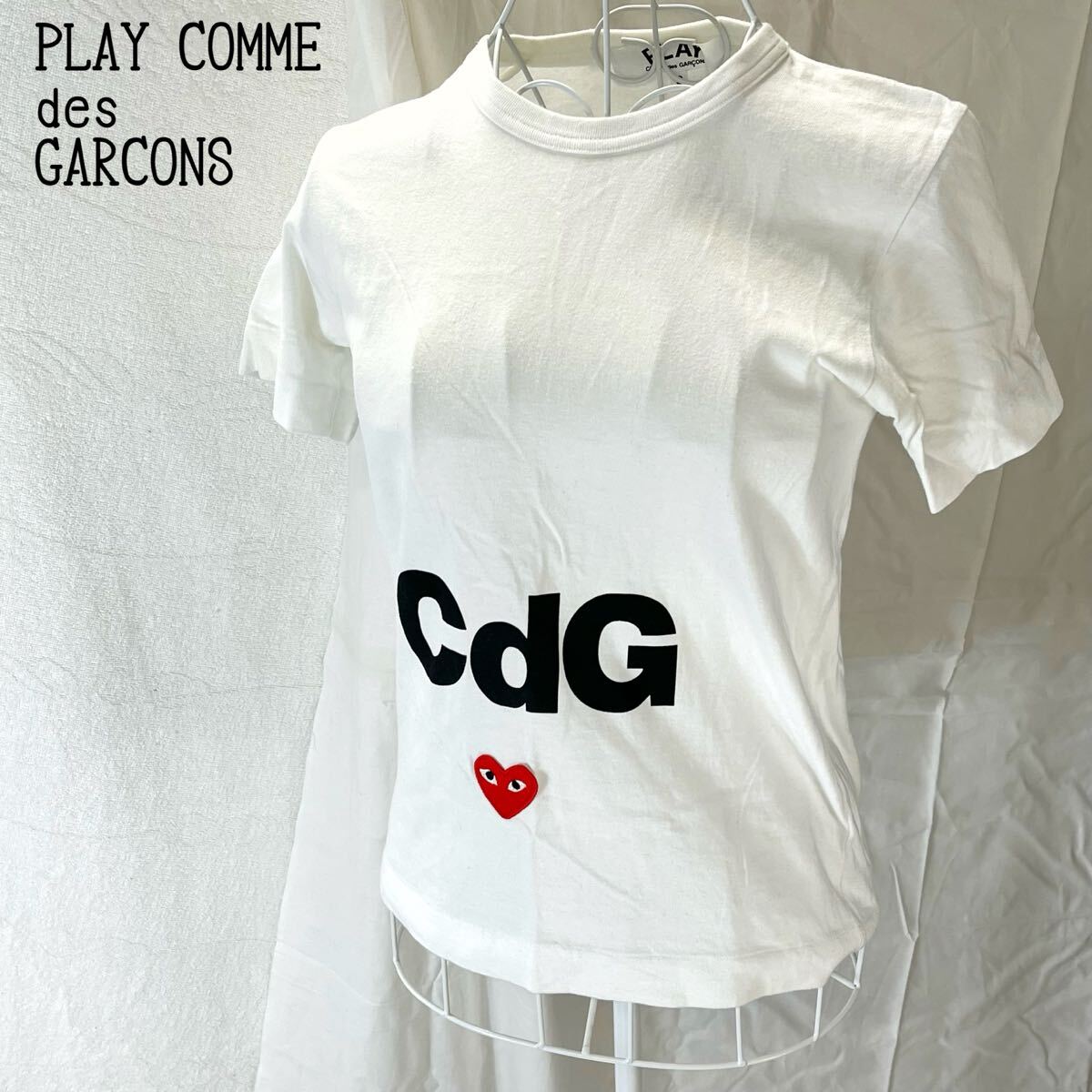 - PLAY COMME des GARCONS プレイ コムデギャルソン CdGロゴ Tシャツ 白 S 日本製 ハートワッペン 背面ハート コットン100 レディースS相当