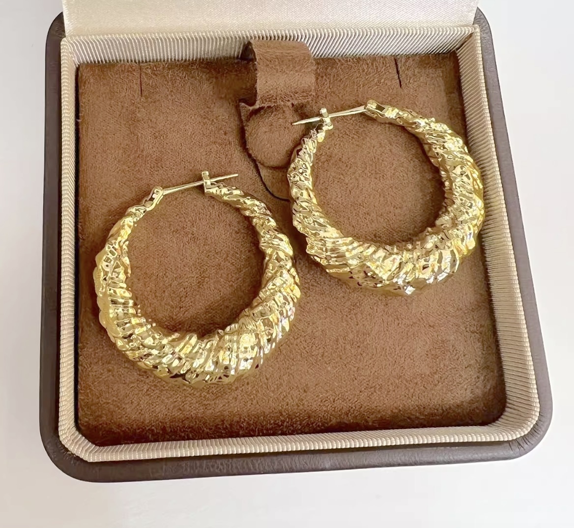 - K18YG バロック リングピアス フープピアス 中空ピアス イエローゴールド 凸凹 模様 くしゃくしゃ 18K 18金 YG ピアス