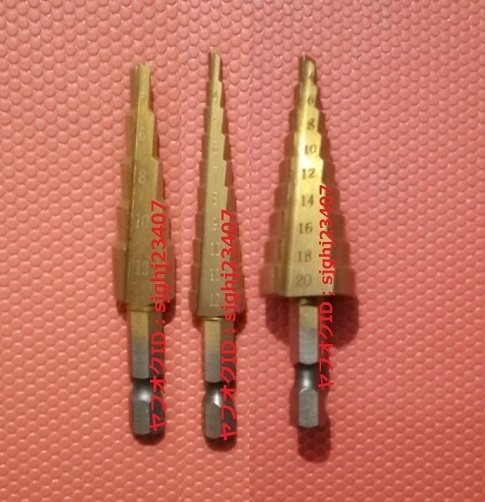 ・刃の表面をゴールドチタンコート加工することにより、耐久性と切削力を向上したステップドリルです。