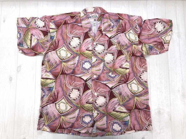 - ヴィルエリード Viruue Reid レトロ オールド サーフ ビーチ 植物モチーフ アート 半袖 アロハ シャツ メンズ レーヨン100% ピンク